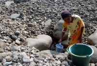 BOGOR, 21/8 – SULIT AIR BERSIH. Siti Fatimah (50 tahun) warga RT 01/04, Kampung Ciapus, Desa Tamansari, Kecamatan Tamansari, mengambil air di bekas galian batu di dasar sungai Ciapus, Kabupaten Bogor, Jabar, Kamis (20/8). Ratusan warga di wilayah ini kesulitan air bersih untuk keperluan sehari-hari karena sumber air dari sumur dan sungai sudah mengering akibat musim kemarau yang terjadi sejak dua bulan lalu. FOTO ANTARA/Arif Firmansyah/Koz/nz/09.