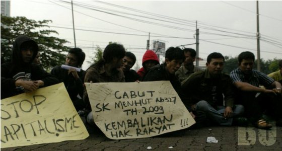 “Saya sangat kecewa sekali dengan pernyataan Menteri Kehutanan yang seperti ingin mengadu-domba warga asli dan pendatang, tanpa melihat masalah yang sebenarnya, bahwa ijin HTI yang dikeluarkan Menhut justru bermasalah.” Kata bapak ini dengan sedih. (Pranata Agus)