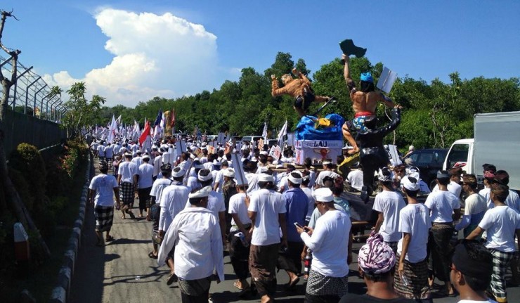 Aksi massa ribuan orang ini berjalan damai. Kendati demikian, mereka sempat dihadang ketika bergerak menuju bundaran Bandara Ngurah Rai. Namun, setelah melalui proses negosiasi, massa aksi akhirnya diperbolehkan ke lokasi aksi.