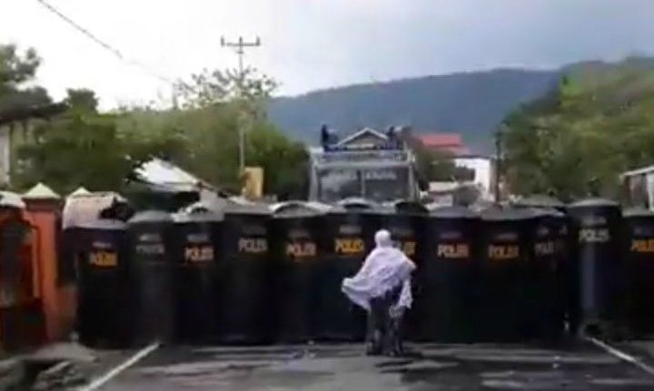 Pantang menyerah, ibu-ibu ini kembali membentuk barisan dan melantunkan dzikir. Beberapa warga meneriakkan kalimat takbir dan tauhid.