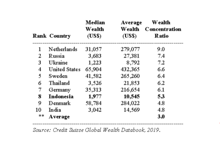 Merujuk laporan Global Wealth Report 2021 yang dibuat oleh Credit Suisse, sebanyak 121,5 juta (67,2 persen) orang dewasa di Indonesia hanya punya kekayaan di bawah  10.000 USD. Ini mendekati temuan Bank Dunia pada 2018, bahwa 70 persen penduduk Indonesia masuk kategori (rentan dan miskin).