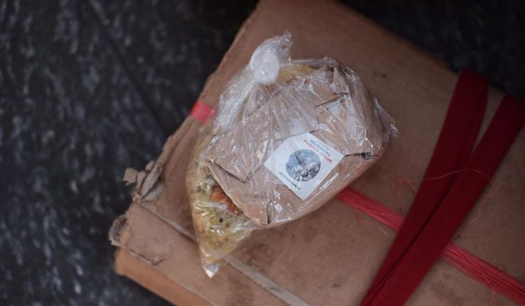 Keterangan foto: nasi bungkus yang dimasak dan dibagi-bagikan oleh Solidaritas Pangan Jogja kepada pekerja informal yang terdampak pandemi. Sumber foto: Facebook/Erna Wati