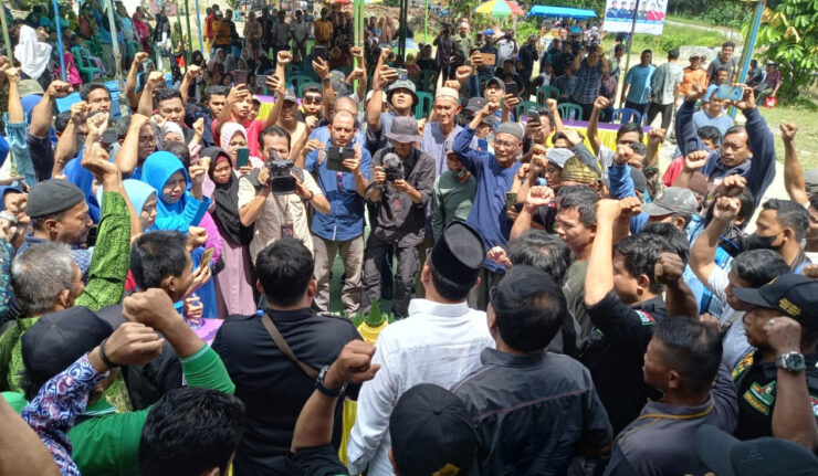 Pekanbaru, Berdikari Online – Ribuan petani yang tergabung dalam Gerakan Lawan Mafia Tanah (GERLAMATA), Kamis (11/01) melaksanakan Syukuran dan Deklarasi dukungan kepada Pasangan Calon Presiden dan Wakil Presiden Prabowo Subianto – Gibran Rakabuming Raka di Desa Kijang Rejo, Kecamatan Tapung, Kabupaten Kampar. Acara tersebut juga dihadiri mantan Gubernur Riau, Rusli Zainal.