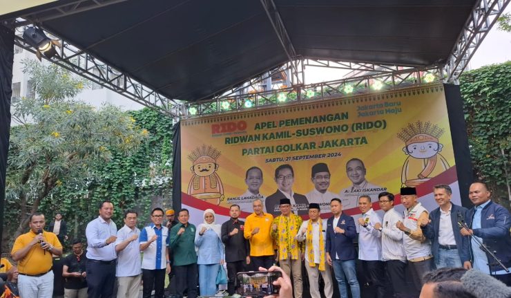 Pasangan Ridwan Kamil- Suswono (RIDO), Calon Gubernur dan Calon Wakil Gubernur Daerah Khusus Jakarta terus bergerak memastikan langkah-langkah menuju kemenangan. Kali ini Dewan Pimpinan Daerah Golkar Jakarta menggelar Apel Pemenangan RIDO, di Kantor Golkar Cikini, Sabtu, jam 15:00 , 21 September 2024. Apel Pemenangan tersebut juga dihadiri perwakilan 15 Partai politik Koalisi Indonesia Maju (KIM) Plus.