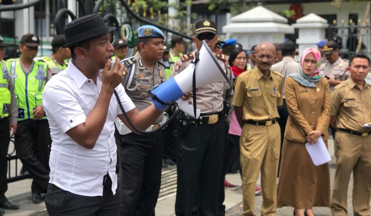 Dalam aksi ini, perwakilan Posko Menangkan Pancasila menyerahkan penyerahkan pernyataan sikap kepada perwakilan Pemerintah Provinsi Jabar.