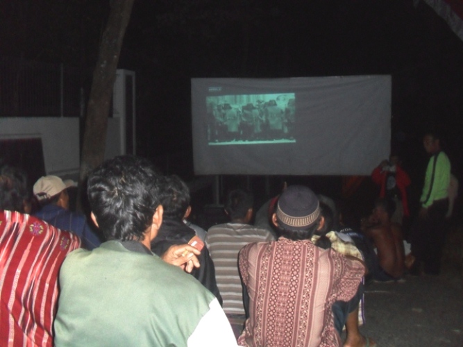 Acara nonton bareng ini dimaksudkan sebagai pengisi waktu dan sekaligus untuk memupuk semangat juang petani. Kebetulan, panitia pelaksana acara ini, yaitu aktivis Liga Mahasiswa Nasional untuk Demokrasi (LMND), menyiapkan sejumlah film, seperti karikatur sejarah perjuangan bangsa dan “Darah Garuda”.