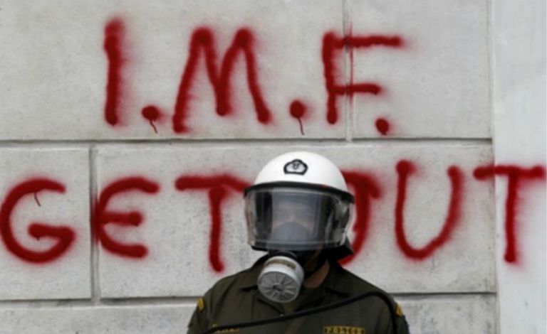 IMF mengemban beban atas semua pekerjaan kotor yang dilakukan melalui intervensinya. Ini termasuk perampasan kedaulatan, tuntutan privatisasi dan pengurangan belanja sosial, gaji, upah dan pensiun, serta memastikan prioritas pembayaran utang. IMF bertindak sebagai ‘si buta’ bagi bank-bank besar dengan cara mengalihkan kritik politik dan kerusuhan sosial.