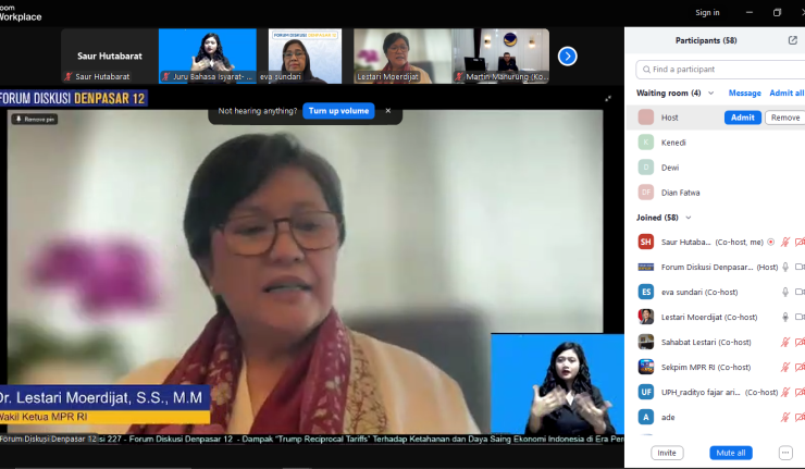 “Dengan strategi yang tepat, Indonesia dapat mengubah tantangan menjadi momentum untuk memperkuat posisi di panggung perdagangan global yang terus berubah saat ini,” kata Wakil Ketua MPR RI Lestari Moerdijat dalam sambutan pada diskusi daring bertema Dampak “Trump Reciprocal Tariffs” Terhadap Ketahanan dan Daya Saing Ekonomi Indonesia di Era Perdagangan Global yang Berubah, yang digelar Forum Diskusi Denpasar 12, Rabu (16/4).