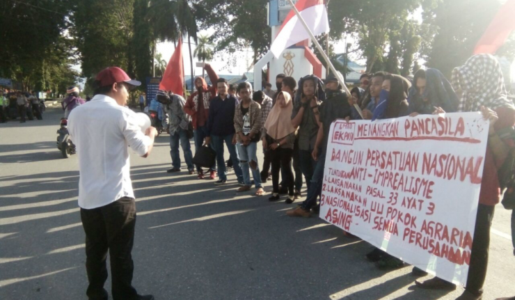 Tuntutan itu disuarakan melalui aksi kampanye “Menangkan Pancasila” yang digelar oleh 30-an anggota LMND dari depan kampus Universitas Sintuwu Maroso (UNSIMAR) menuju  Bundaran Jam Kota Poso, Selasa, 2 Oktober 2017.