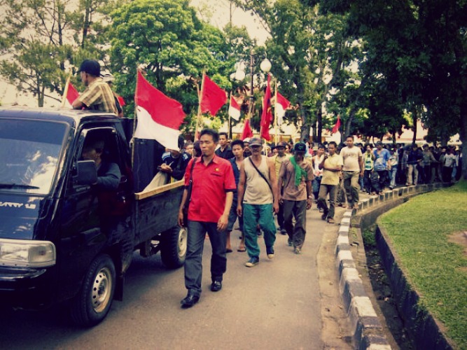 Usai menggelar mimbar bebas, para petani dan anggota KASBI melanjutkan aksi long march. Kondisi cuaca pada Jumat (28/12) siang cukup cerah. “Kondisi cuaca agak bagus hari ini. Tidak terlalu terik, tapi juga tidak turun hujan,” kata Andi.