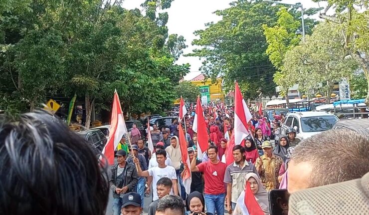 Pekanbaru, Berdikari Online – Ribuan massa aksi yang tergabung dalam Gerakan Lawan Mafia Tanah (GERLAMATA) melakukan aksi unjuk rasa di DLHK hingga ke Kanwil BPN Provinsi Riau (08/08/2023). Terlihat, massa aksi membentangkan spanduk baliho yang bertuliskan “Riau darurat mafia tanah”.