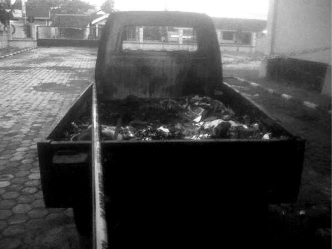 “Kami berusaha memadamkan. Tetapi ternyata ruangan tempat kami menginap, yakni lapangan tenis indoor Menggala, terkuci. Jadinya kami hanya bisa melongo melihat mobil logistik kami terbakar,” kata Wondo.