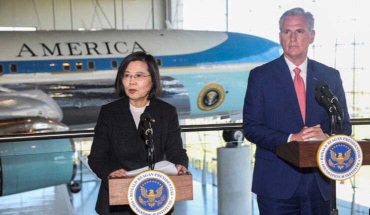 Pakar geopolitik Dr. Radhika Desai mengatakan bahwa kebijakan luar negeri Amerika Serikat (AS) sejak akhir Perang Dunia II bertujuan untuk menolak keberadaan Republik Rakyat Tiongkok (RRT) dalam Perserikatan Bangsa-Bangsa, serta berusaha mencegah bersatunya Rusia dan Tiongkok. Menurutnya, menggunakan Taiwan sebagai pion dalam menghadapi Tiongkok, sebagaimana Ukraina terhadap Rusia.