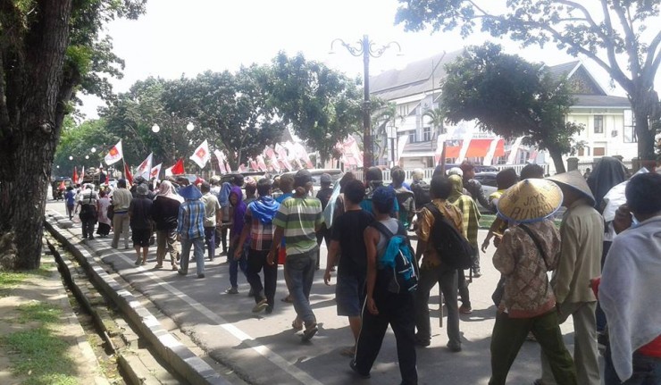 Panas terik matahari tidak menghentikan langkah 600-an petani Jambi untuk melanjutkan aksi berjalan kaki menuju Ibukota Republik Indonesia, Jakarta. Mereka tetap bersemangat dan tak henti-hentinya meneriakkan, hidup petani!
