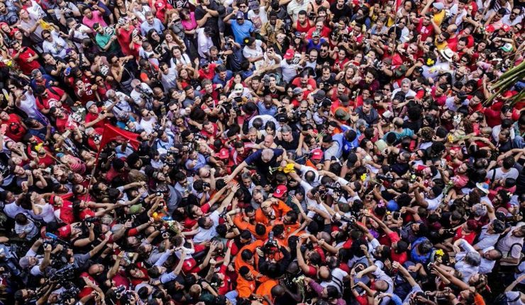 Keterangan Foto: Lula da Silva di tengah kerumunan massa pendukungnya, sesaat sebelum menyerahkan diri ke Polisi (foto: Francisco Ramos Proner)