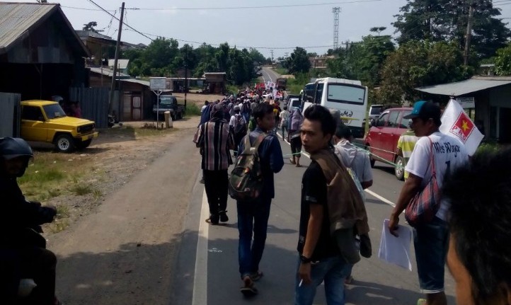Setelah berjalan kaki selama 2 hari, rombongan petani Jambi yang sedang menggelar aksi jalan kaki menuju Jakarta sudah tiba di Tempino, Mestong, Muaro Jambi.