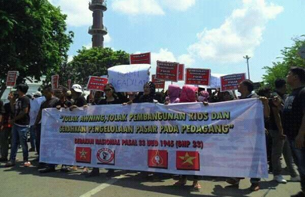 Aksi para pedagang ini didukung oleh Serikat Pedagang Kaki Lima (SPK5), Serikat Rakyat Miskin Indonesia (SRMI), Liga Mahasiswa Nasional untuk Demokrasi (LMND), Aksi Perempuan Indonesia (API) Kartini dan Posko Perjuangan Rakyat Indonesia (Pospera).