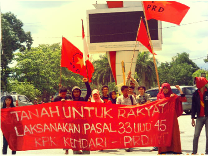 Puluhan anggota Partai Rakyat Demokratik (PRD) kota Kendari kembali menggelar aksi solidaritas untuk perjuangan petani Jambi. Mereka menggelar aksinya di kantor DPRD Sultra, Kamis (27/12).