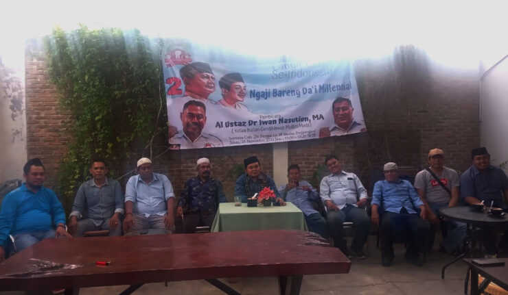 Al Ustaz Dr Iwan Nasution ,MA yang menjadi pembicara dalam kegiatan Ngaji Bareng Da’i Milenial mengungkap pentingnya menjaga kerukunan dan suasana teduh serta ceria dalam Pilpres 2024.