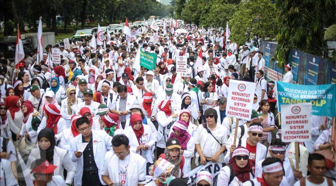 Ribuan dokter yang tergabung dalam Ikadan Dokter Indonesia (IDI) menggelar aksi protes di depan Istana Negara, Senin (24/10/2016). Mereka menolak program Dokter Layanan Primer (DLP).