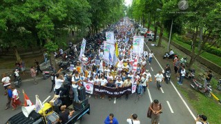 Dalam aksi SRMI tersebut, hadir juga anggota Liga Mahasiswa Nasional untuk Demokrasi (LMND) dan Aksi Perempuan Indonesia (API) Kartini.