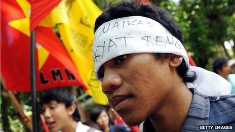 Aksi massa menolak kenaikan harga Bahan Bakar Minyak (BBM) di Jogjakarta, tepatnya di pertigaan depan Kampus Universitas Islam...