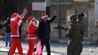 ‘Santa’ Palestina Bentrok dengan Polisi Israel