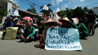 Puluhan mahasiswa yang tergabung dalam aliansi Advokasi Rakyat Untuk Masyarakat (ARUM) mendampingi petani yang tergabung dalam organisasi Forum...