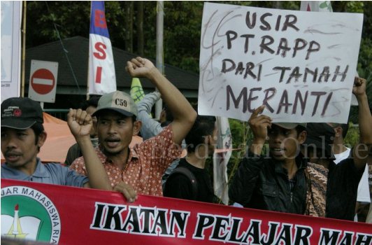 Seratusan mahasiswa di Yogjakarta menyatakan dukungan dan solidaritas atas perjuangan petani di Pulau Padang, Kabupaten Kepulauan Meranti, Provinsi...