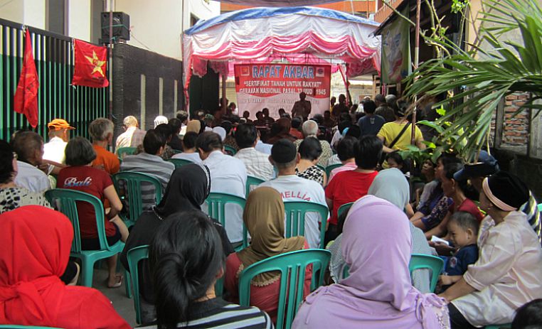 Ratusan warga Penjaringan, Jakarta Utara, menghadiri rapat akbar mengenai agraria, Rabu (9/10/2013). Rapat akbar ini digelar oleh Dewan ...