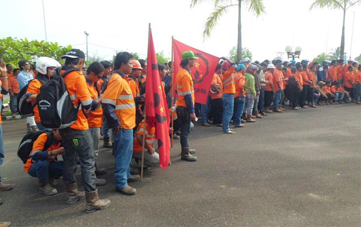 Sedikitnya 500-an buruh yang tergabung dalam Front Nasional Perjuangan Buruh Indonesia (FNPBI) menggelar aksi di kantor DPRD kota...
