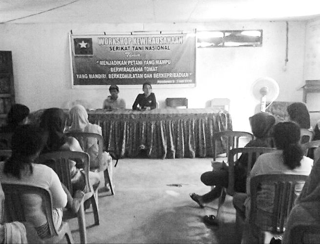 Pengurus Serikat Tani Nasional (STN) Kabupaten Sigi, Sulawesi Tengah, menggelar workshop dan pelatihan kewirausahaan pengolahat tomat bagi petani...