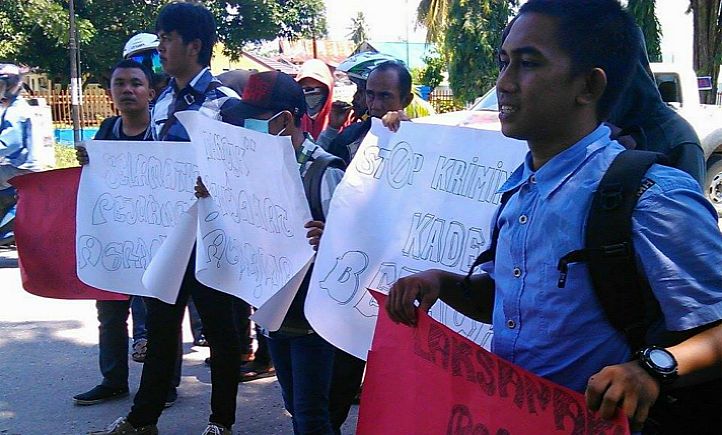 Sedikitnya 170-an mahasiswa dan petani menggelar aksi massa di halaman kantor Pengadilan Negeri (PN) Poso, di kabupaten Poso,...