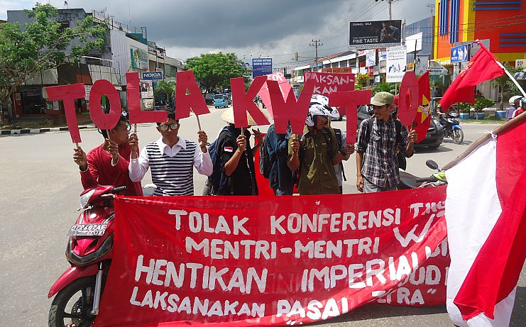 Sedikitnya 40-an mahasiswa dan rakyat miskin di Surabaya, Jawa Timur, menggelar aksi massa menolak pelaksanaan konferensi tingkat menteri...