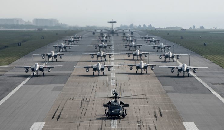 Ditambah lagi, AS punya 19 kapal induk, yang merupakan bagian dari Carrier Strike Group, dengan sekitar 7500 personil, dan masing-masing kapal mengangkut sekitar 65-70 pesawat. Semua itu dikategorikan “pangkalan militer yang mengambang”.